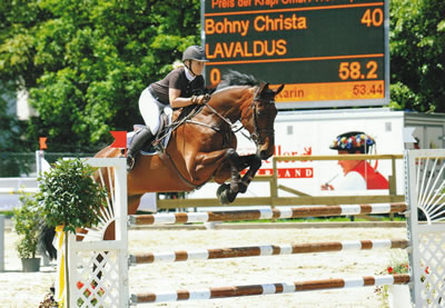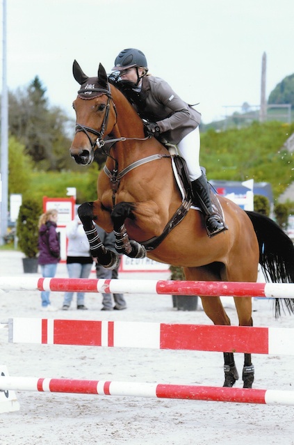 Cambodia, 7j Stute aus Holstein, von Chambertin x Ramirado, Powerfrau mit dem letzten Vermögen und einer Springbegabung wie von einem andern Stern. Springprüfungen platziert.